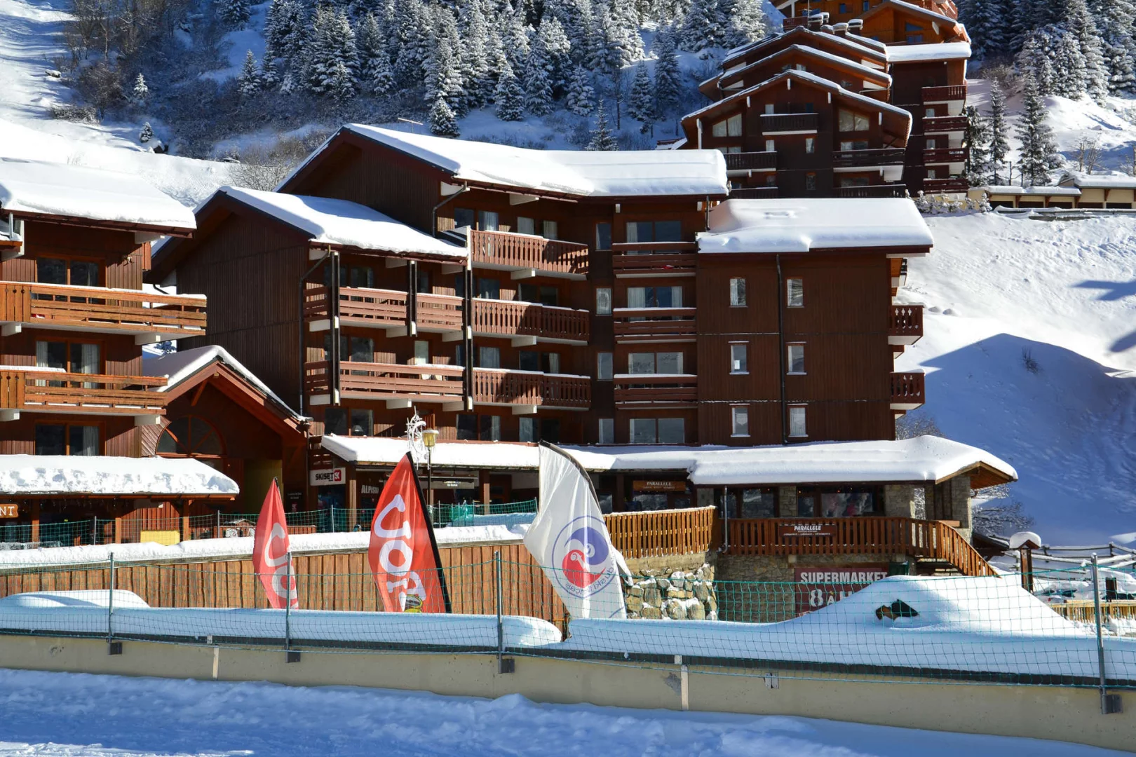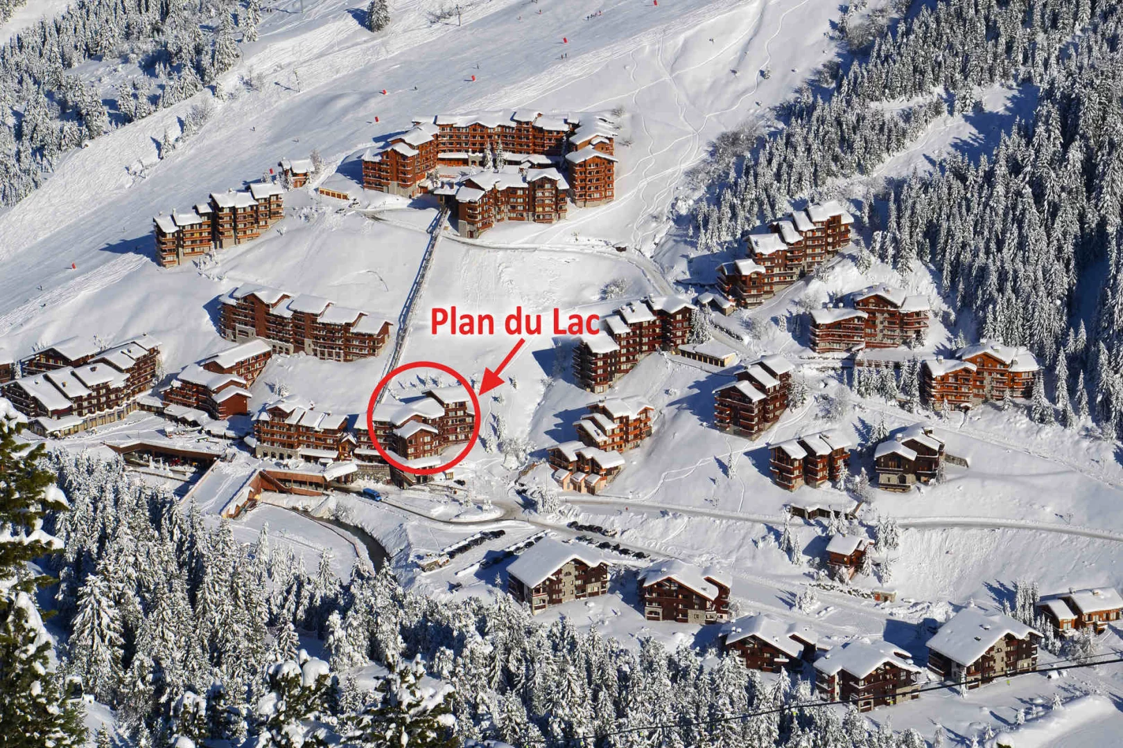 Residence Plan du Lac is located in Chatelet. The commercial centre is at the bottom of the residence. The French ski school meeting point and kindergarten "Piou-Piou" are nearby.