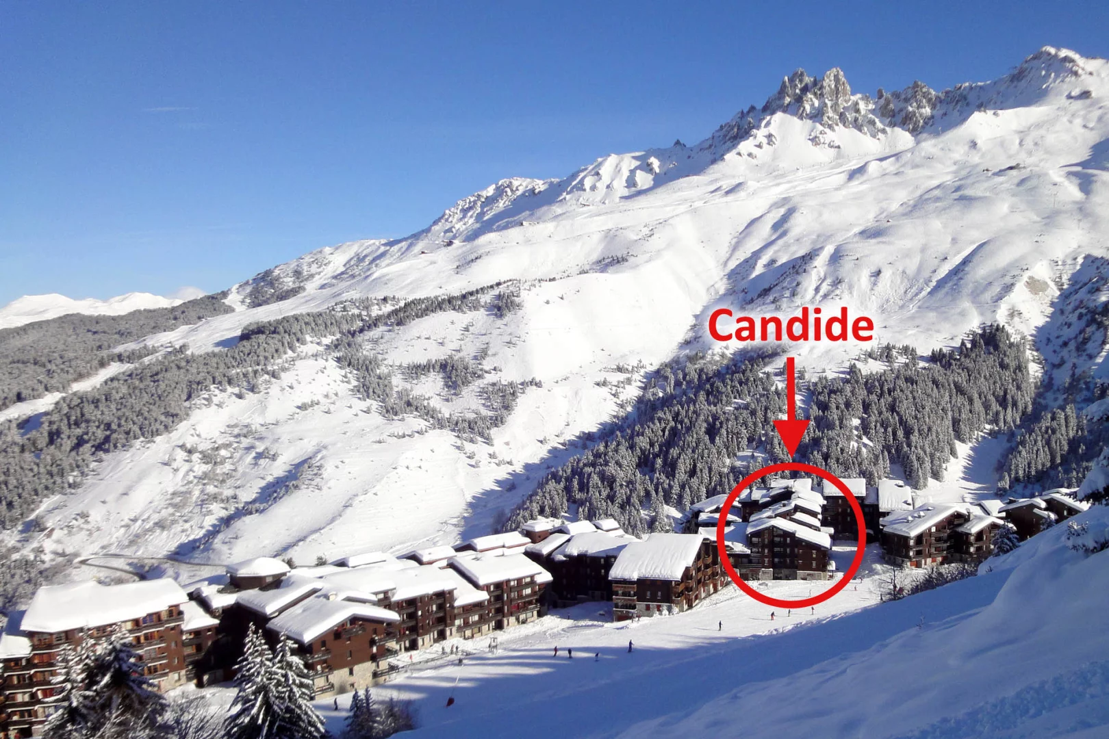 Residence Candide is located along the slopes and in Hameau commercial centre, in the upper part of Laitelet area. To get to the slopes, go to the ski lockers, walk or ski across the square and take the green slope down to the main lifts.
