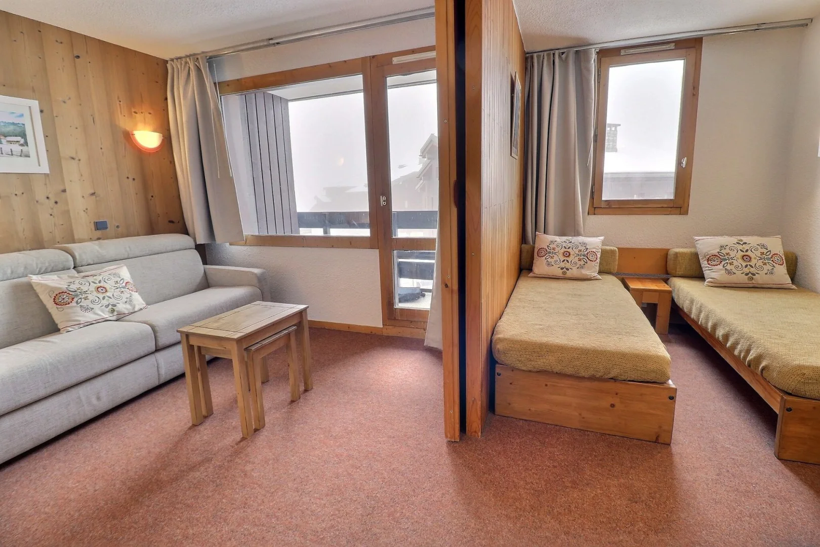 Bedroom separeted by a sliding door: 2 single beds (80x190)