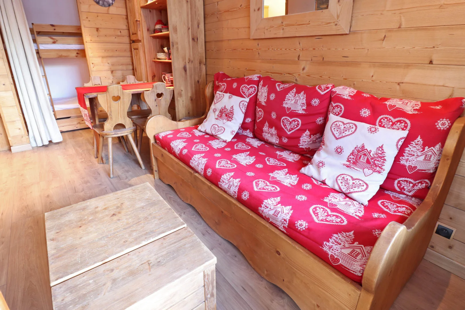 Sleeping corner separated from living-room with a curtain: bunk beds (80x190)