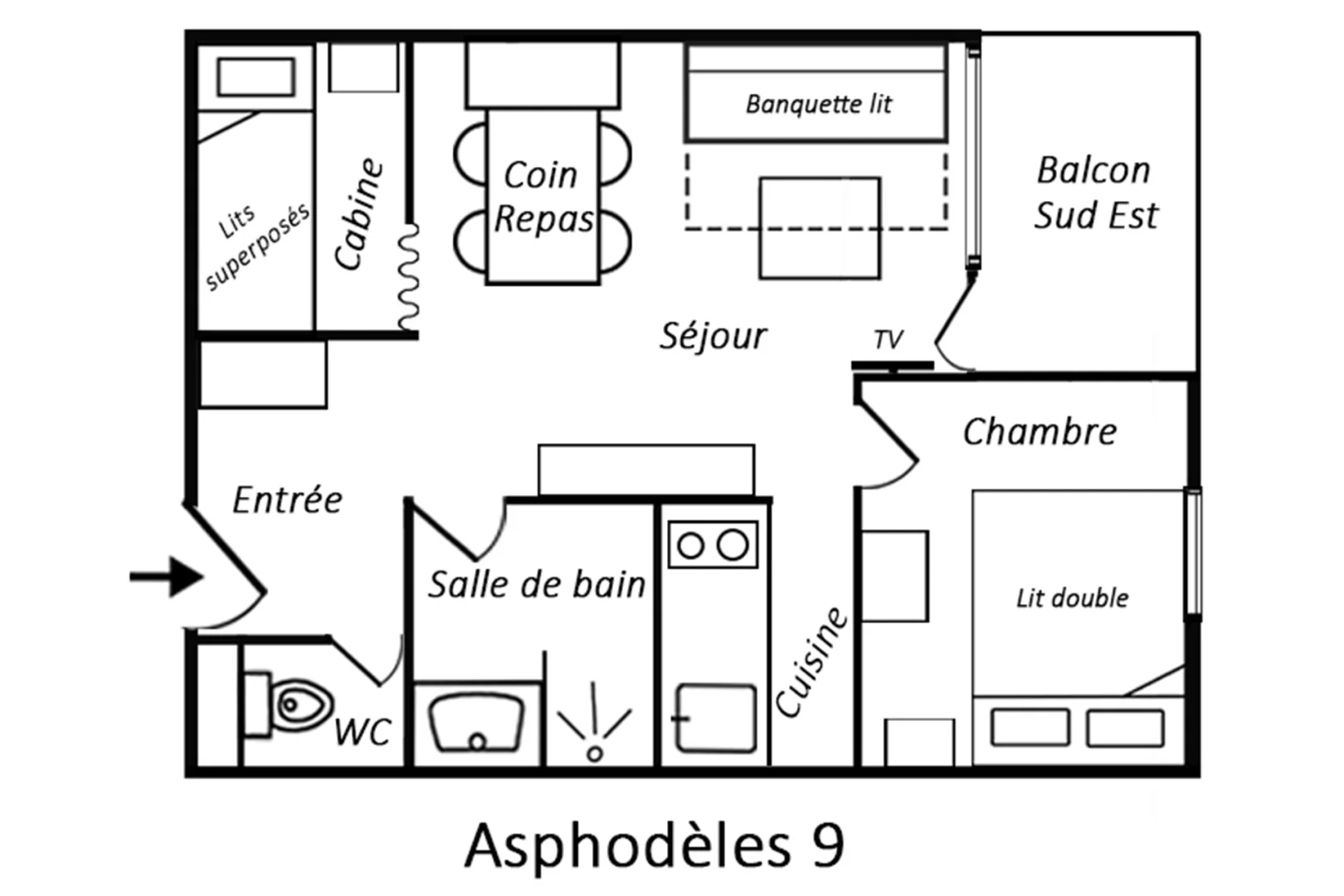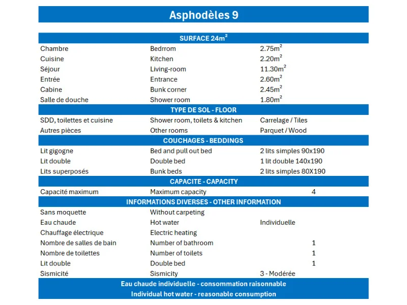Residence Asphodèles is located 200m from the slopes and half-way to the 2 commercial centres: in Le Hameau and in centre.