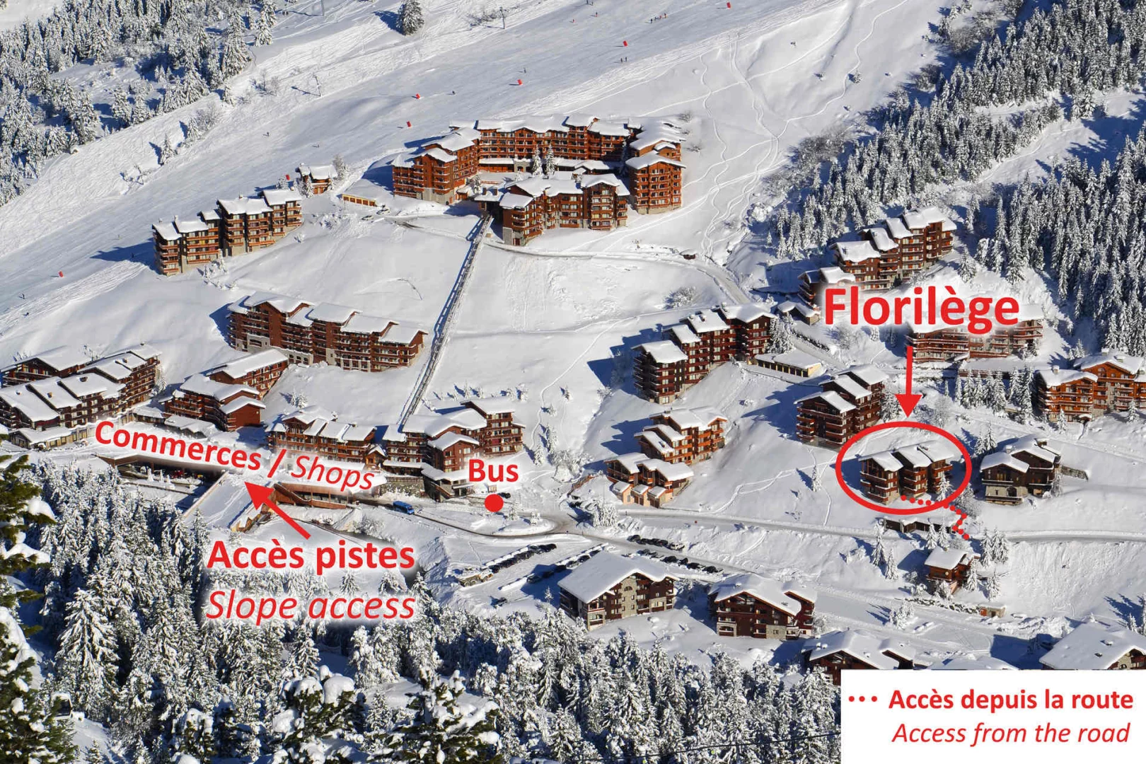Residence Florilège is located 300m from the slopes and 150m from Chatelet commercial centre. You access to the residence by an outside metallic staircase. The area is quiet.