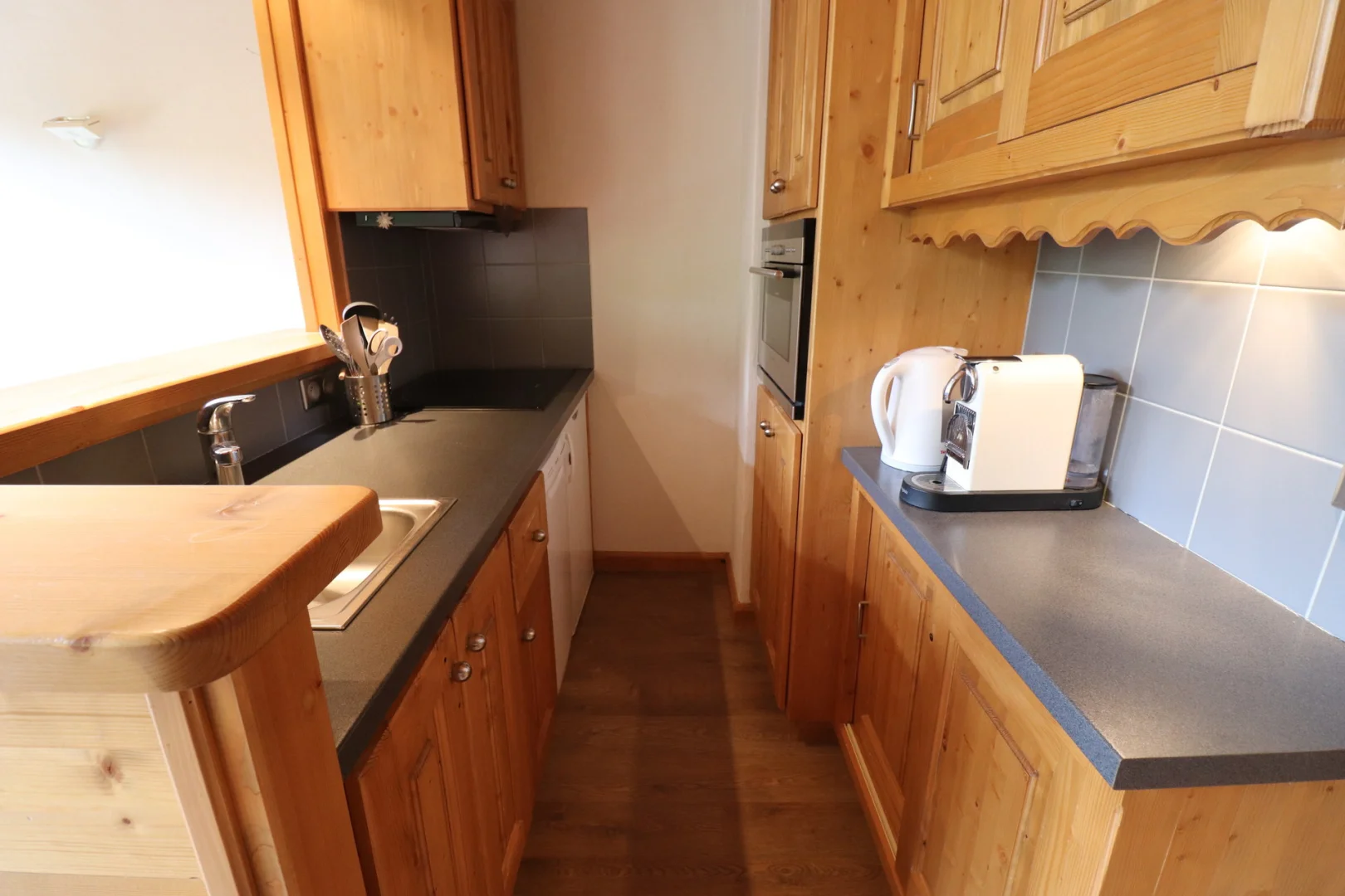 Open kitchen: combined oven and micro-wave, small fridge, 4 ceramic hot plates, 45cm dishwasher, Nespresso coffee machine, filter coffee machine, toaster, electric kettle, hood