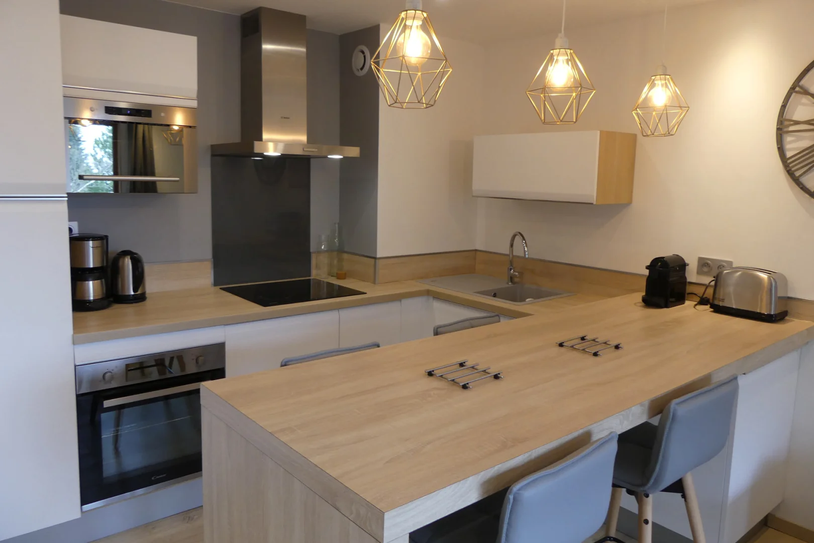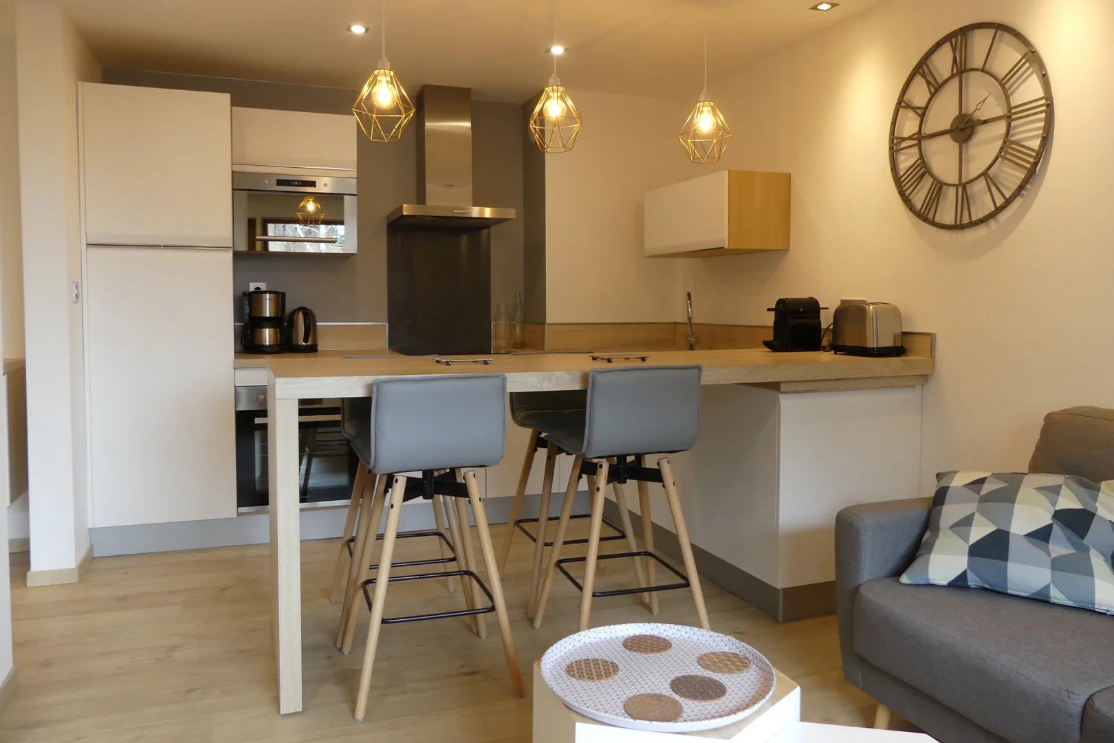 Open kitchen: microwave, oven, fridge, dishwasher, 4 ceramic hobs, Nespresso coffee machine, filter coffee machine, toaster, electric kettle, hood