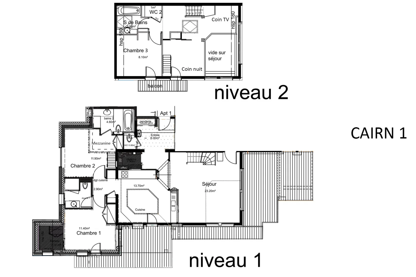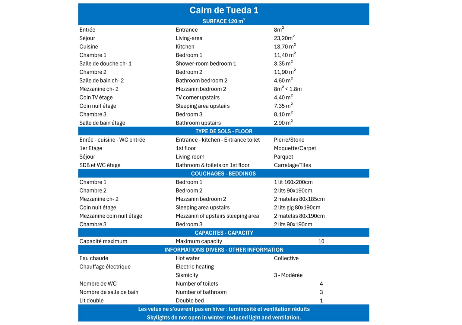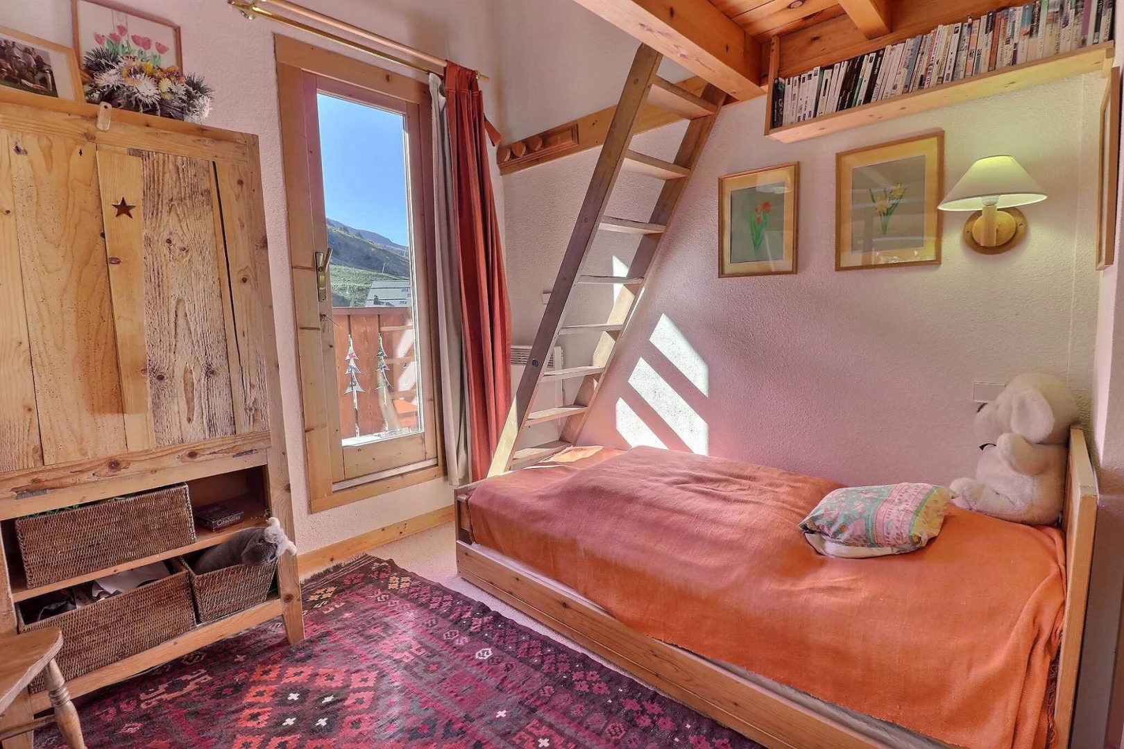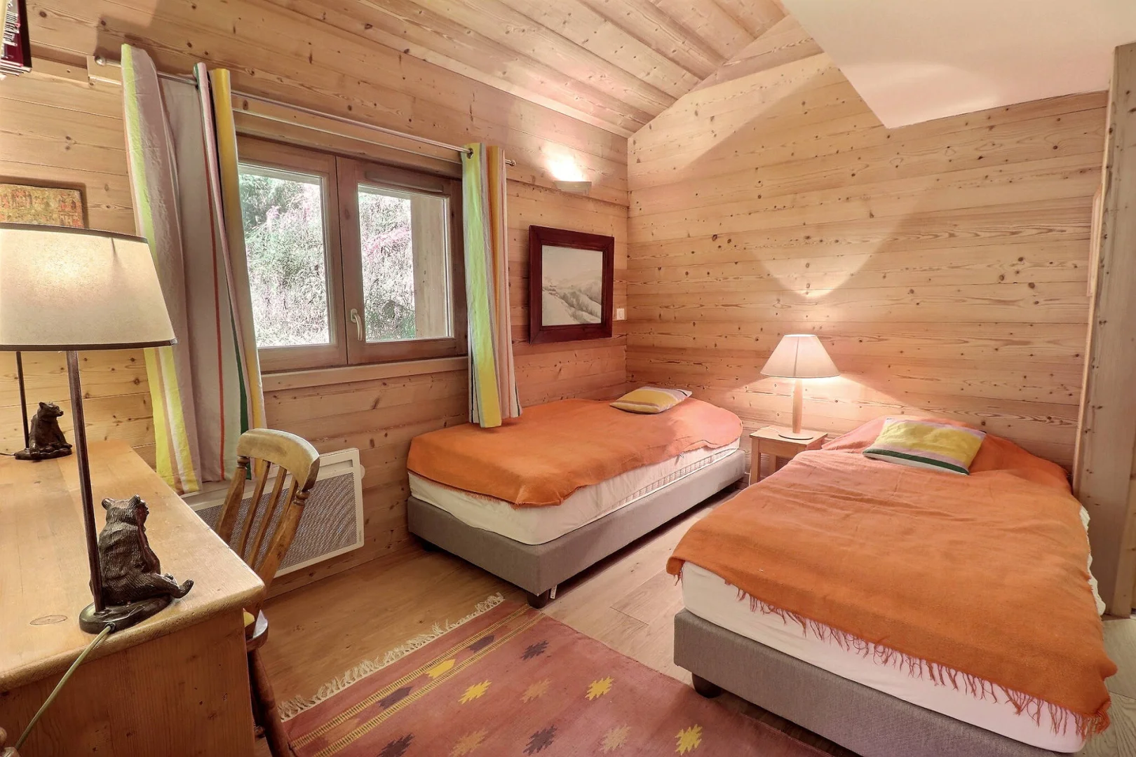 Bedroom 2 (bathroom ensuite): 2 single beds (90x190) & 2 single mattress (2x185) in the mezzanin open on the bedroom