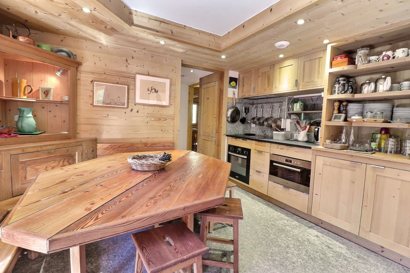 Kitchen with dining-area: fridge, oven, micro-wave, dishwasher, 4 induction hobs, hood, filter coffee machine, piston coffee maker, toaster, electric kettle