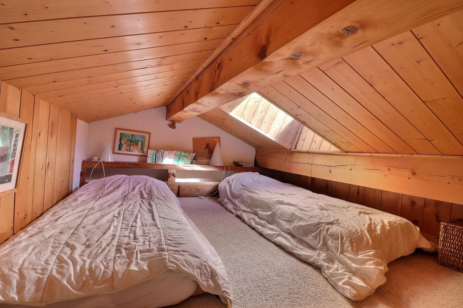 The sleeping areas on the mezzanine are recommended for children because there is a sloping celling