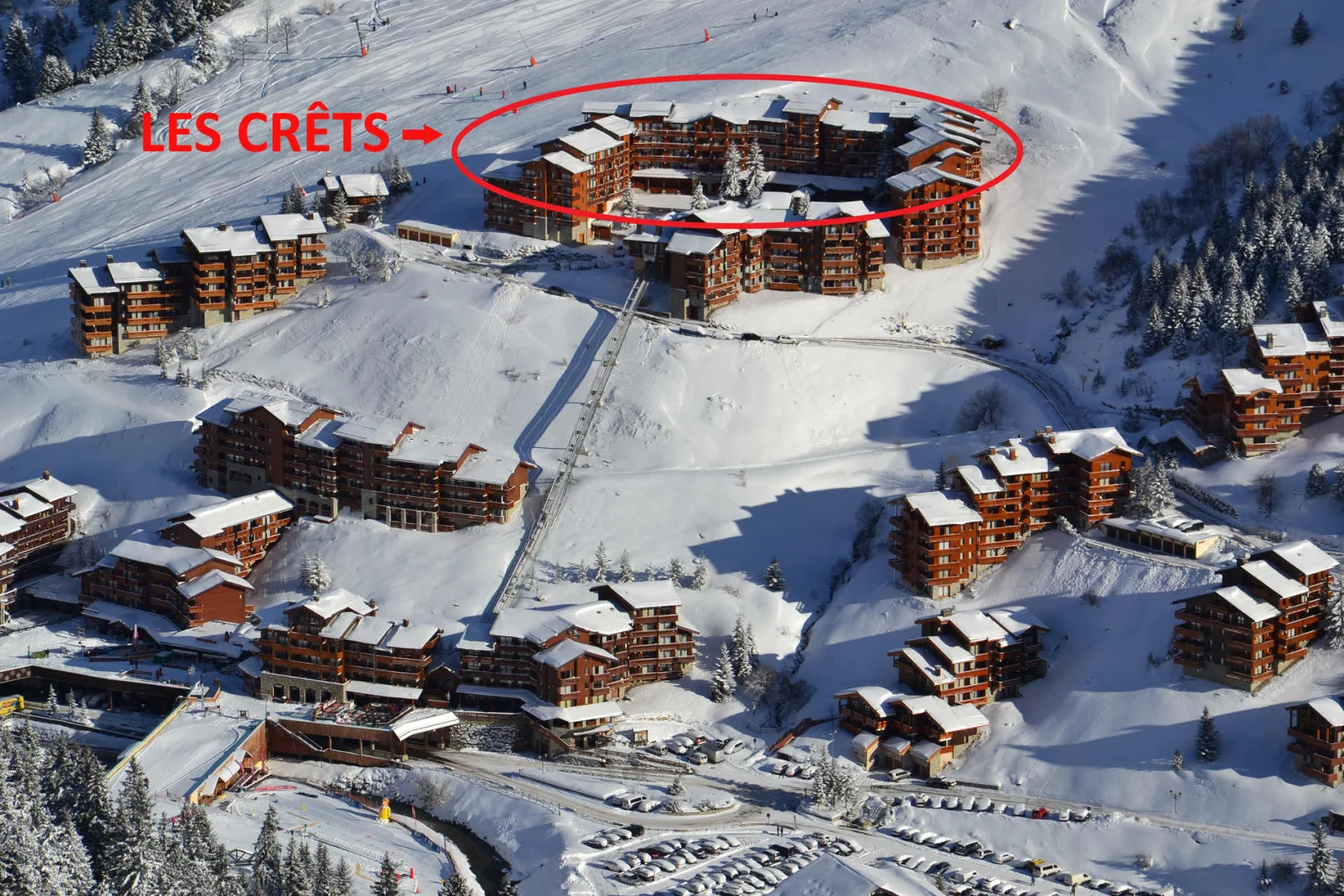 Residence "les Crêts" is ideally situated along the red slope " Aigle ". At the ski lockers exit just put your skis on from the residence and ski down to the lifts.