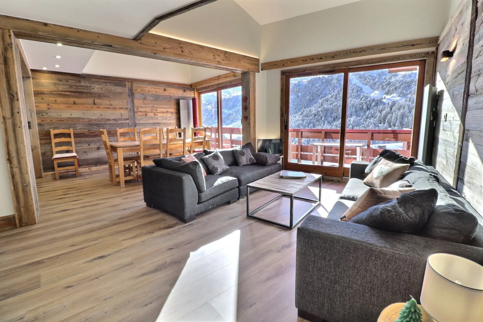 Large and bright living room with 2 sofas (without sleeping) and 1 dining area with a magnificent view on Plattières