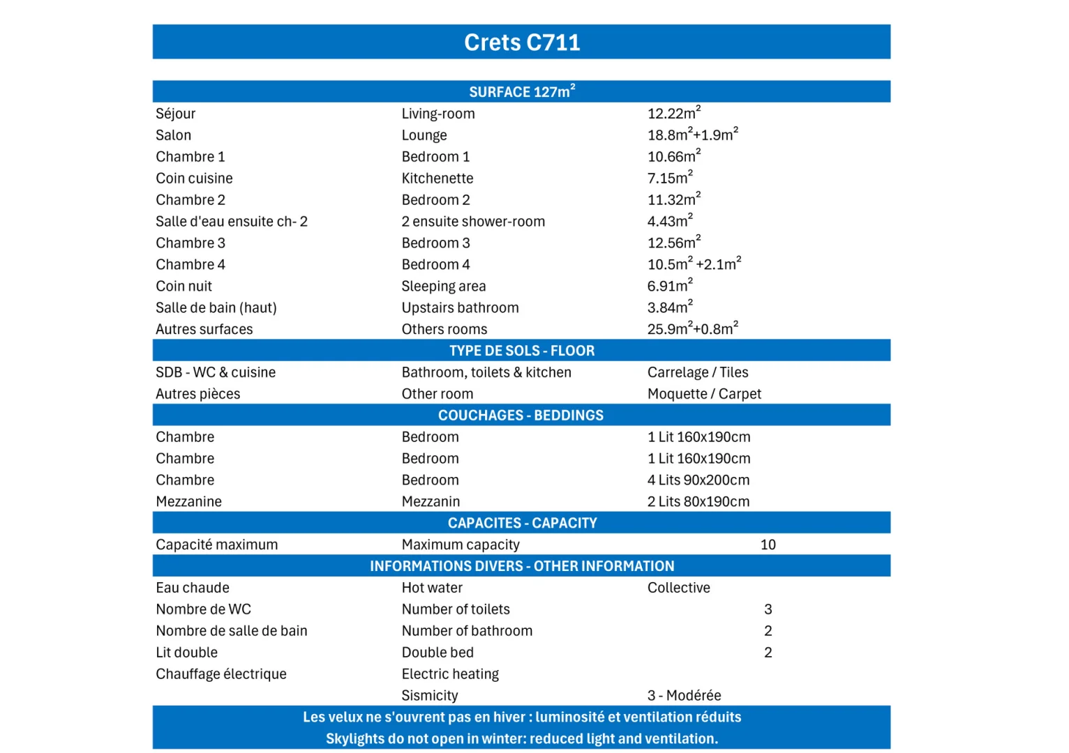 For children, it is possible to add 2 good quality futons either in the bedrooms or on the mezzanine, which opens onto the living room