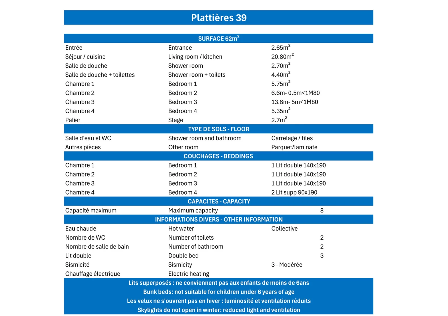 5 Rooms Duplex, 8 persons, 62m², 4th floor, South balcony