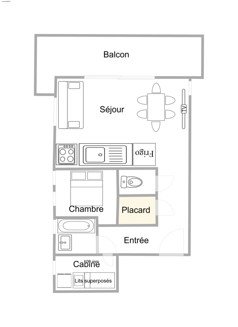 2 Rooms Cabin, 5/6 Persons, 34m², North East and South terrace, 1st floor without lift