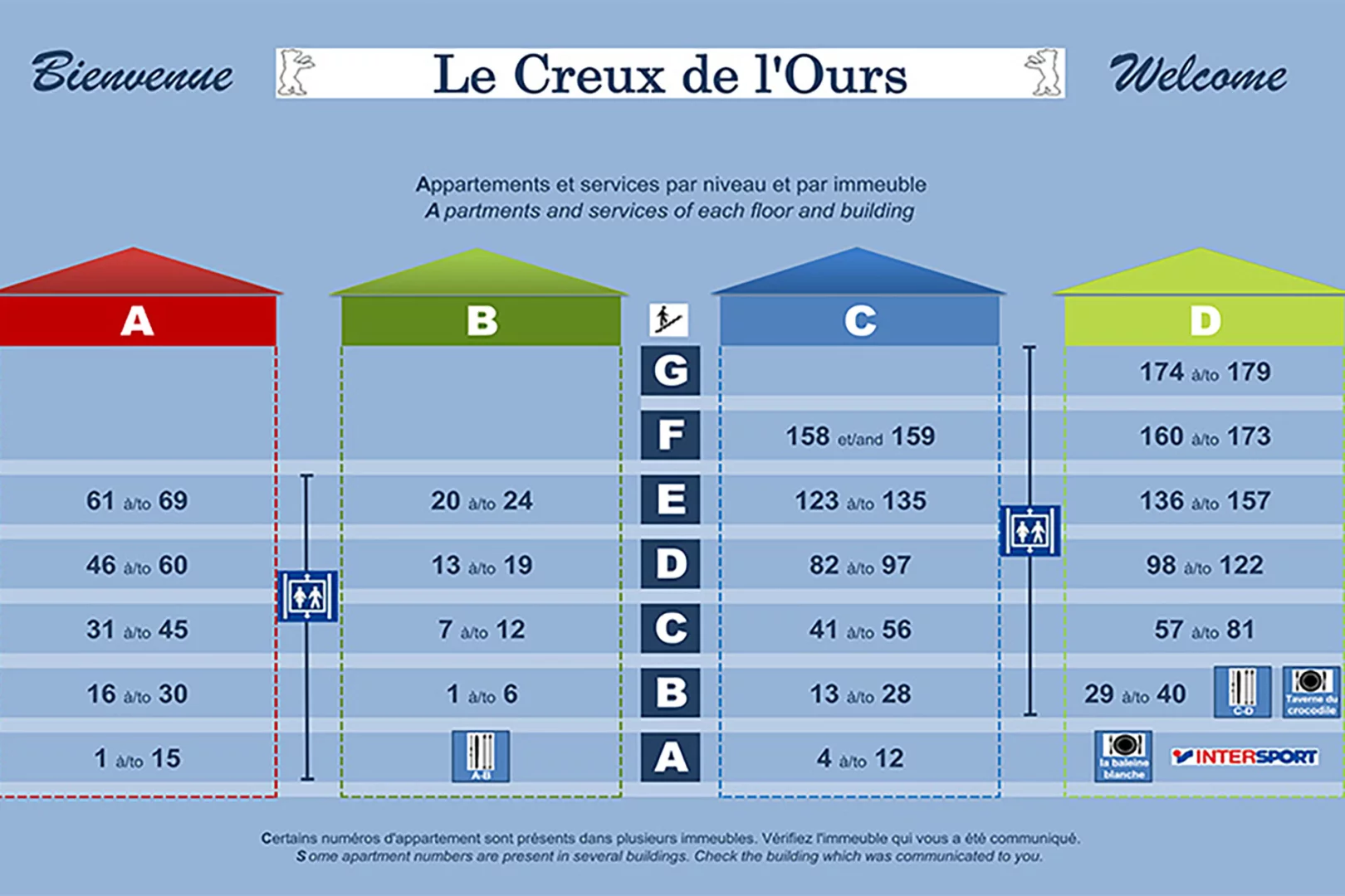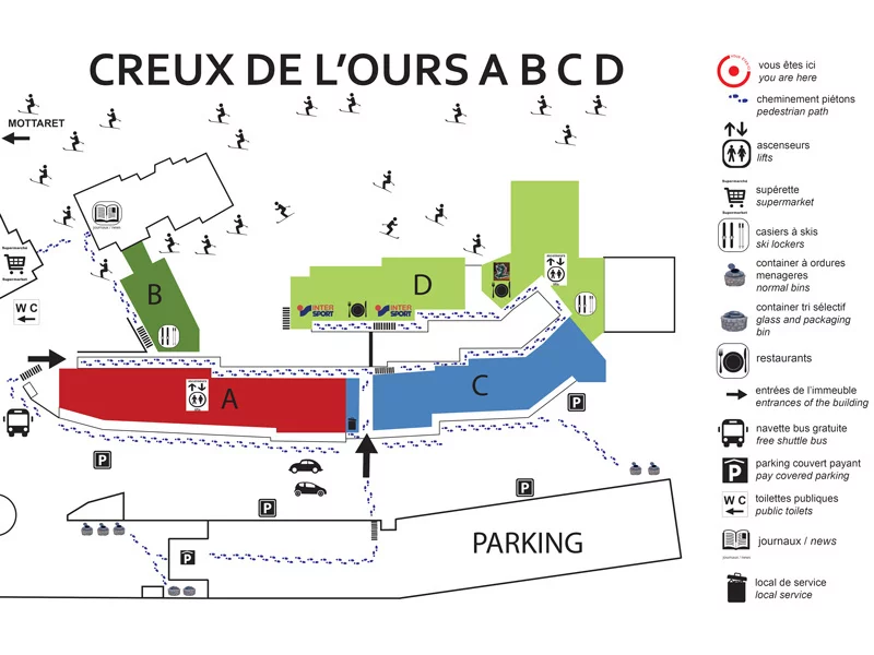 Residence " Creux de l'Ours " is located right in the centre of Hameau area, in the upper part of Laitelet area. It is in the commercial centre and has direct access to the slopes.