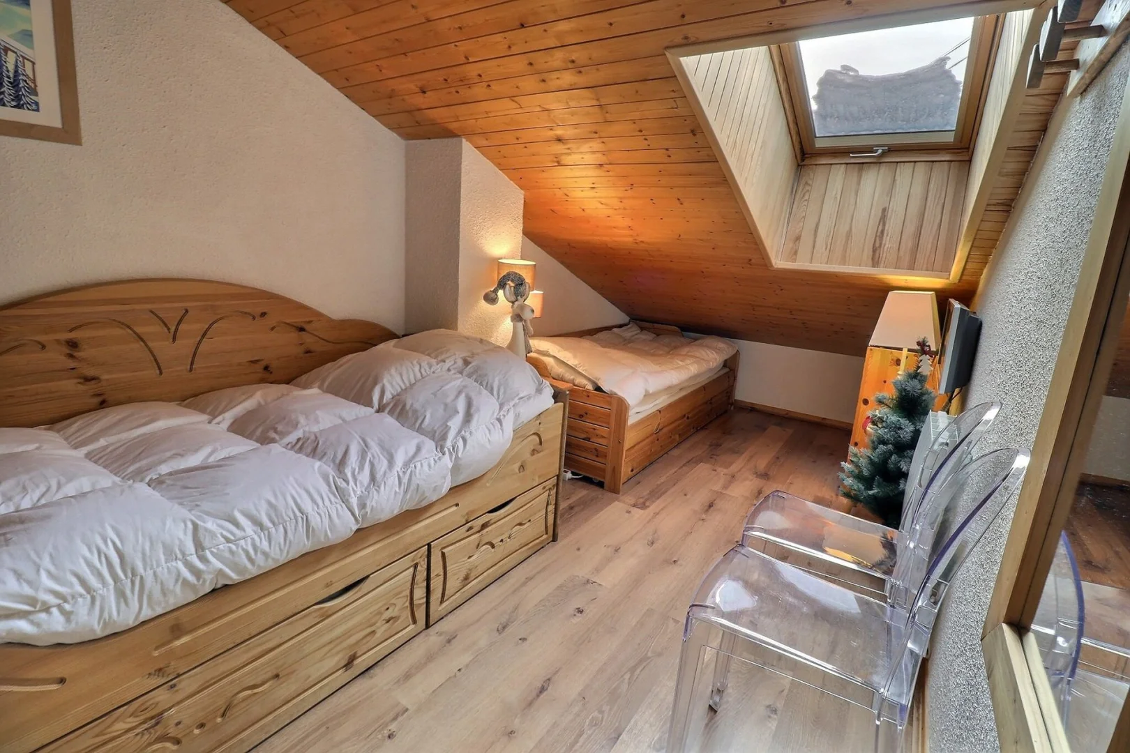 Bedroom 2 with velux window: 2 single beds and 1 pull-out bed (90 x 185)