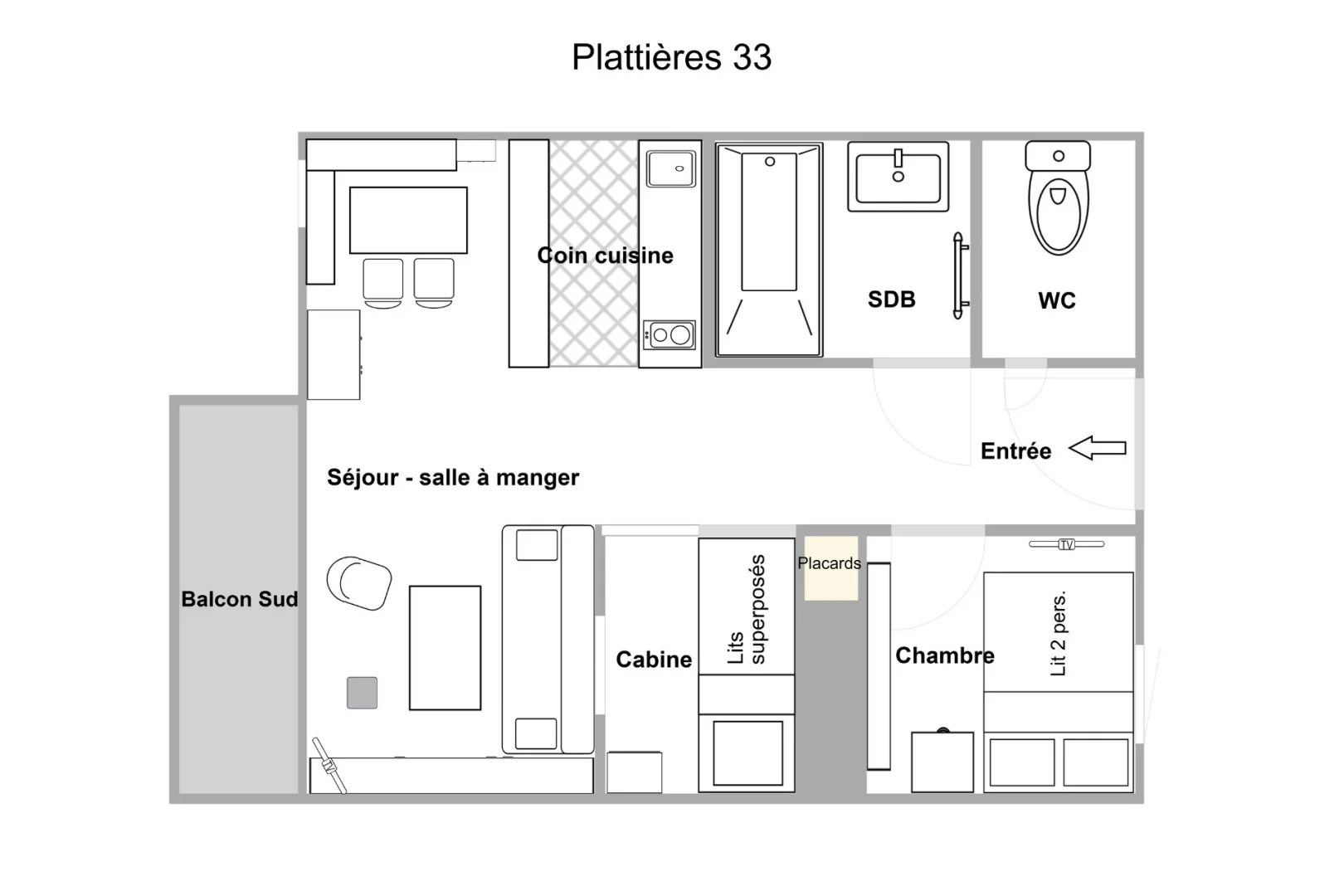 2 Rooms with cabin,5/6 Persons, 35m², South balcony, 2nd Floor