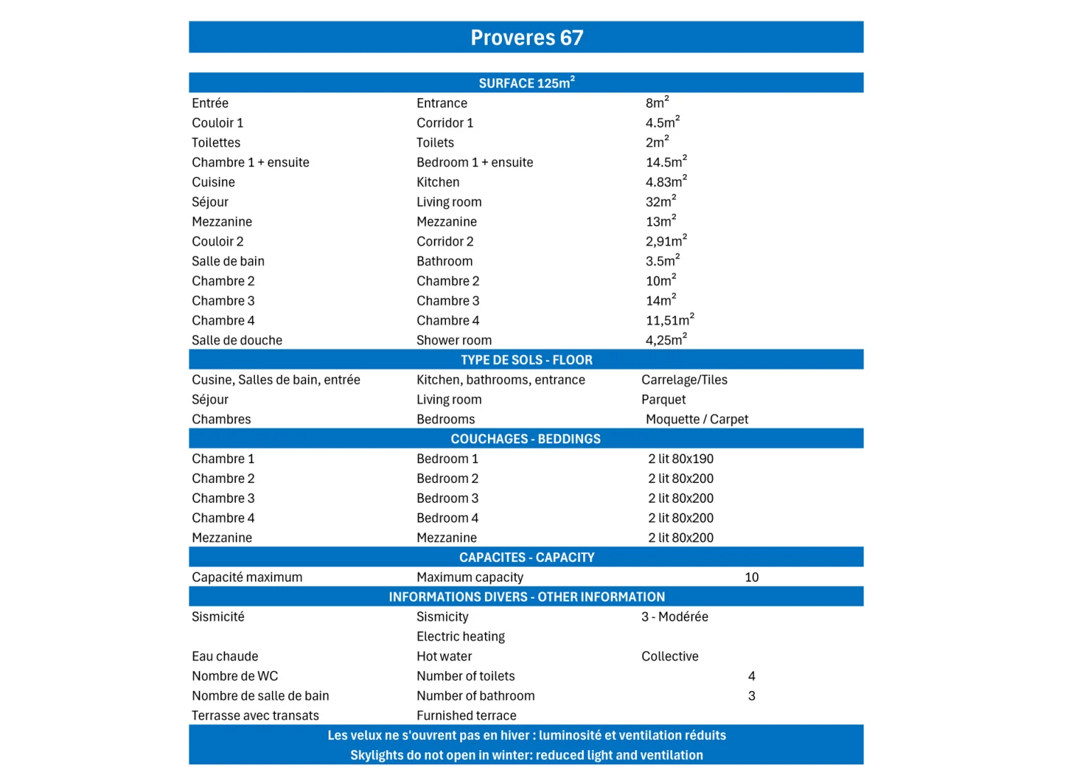 5 room duplex, 10 persons, 125m², south-facing balcony, 4th Floor
