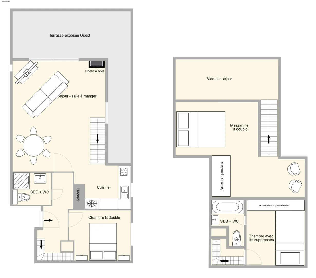 3 Rooms Duplex with mezzanine, 6 people, 61m², West-facing terrace