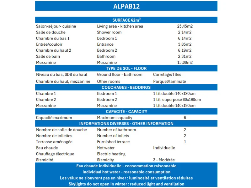 PLEASE NOTE : individual water heater (200 liters) providing good comfort, provided it is used reasonably