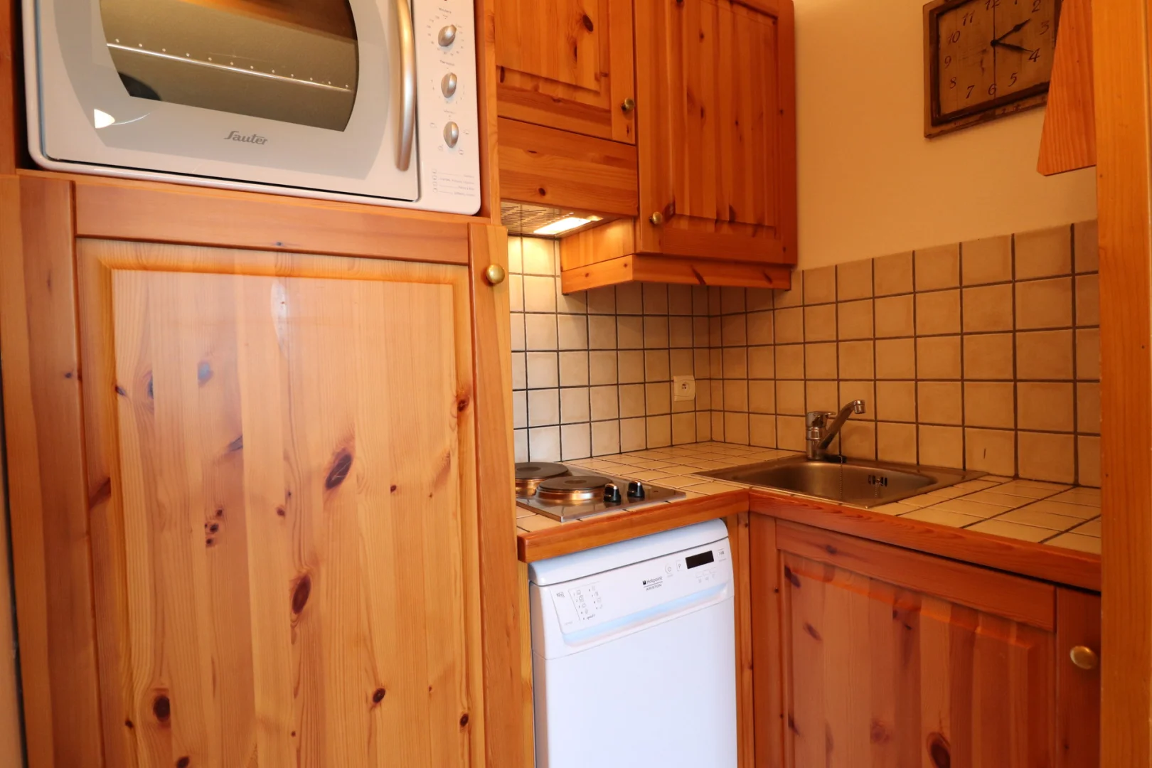 Kitchen corner : fridge, dishwasher, 2 hot plates, oven, microwaves, hood, 1 SENSEO coffee machine, filter coffee machine, toaster, electric kettle.