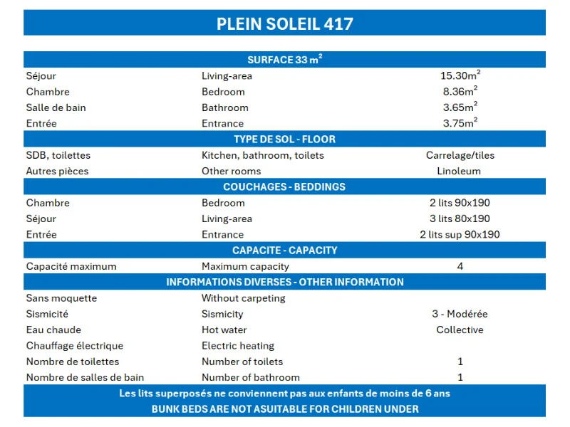 Residence " Plein Soleil " is ideally located along the slopes and nearby the centre commercial area.