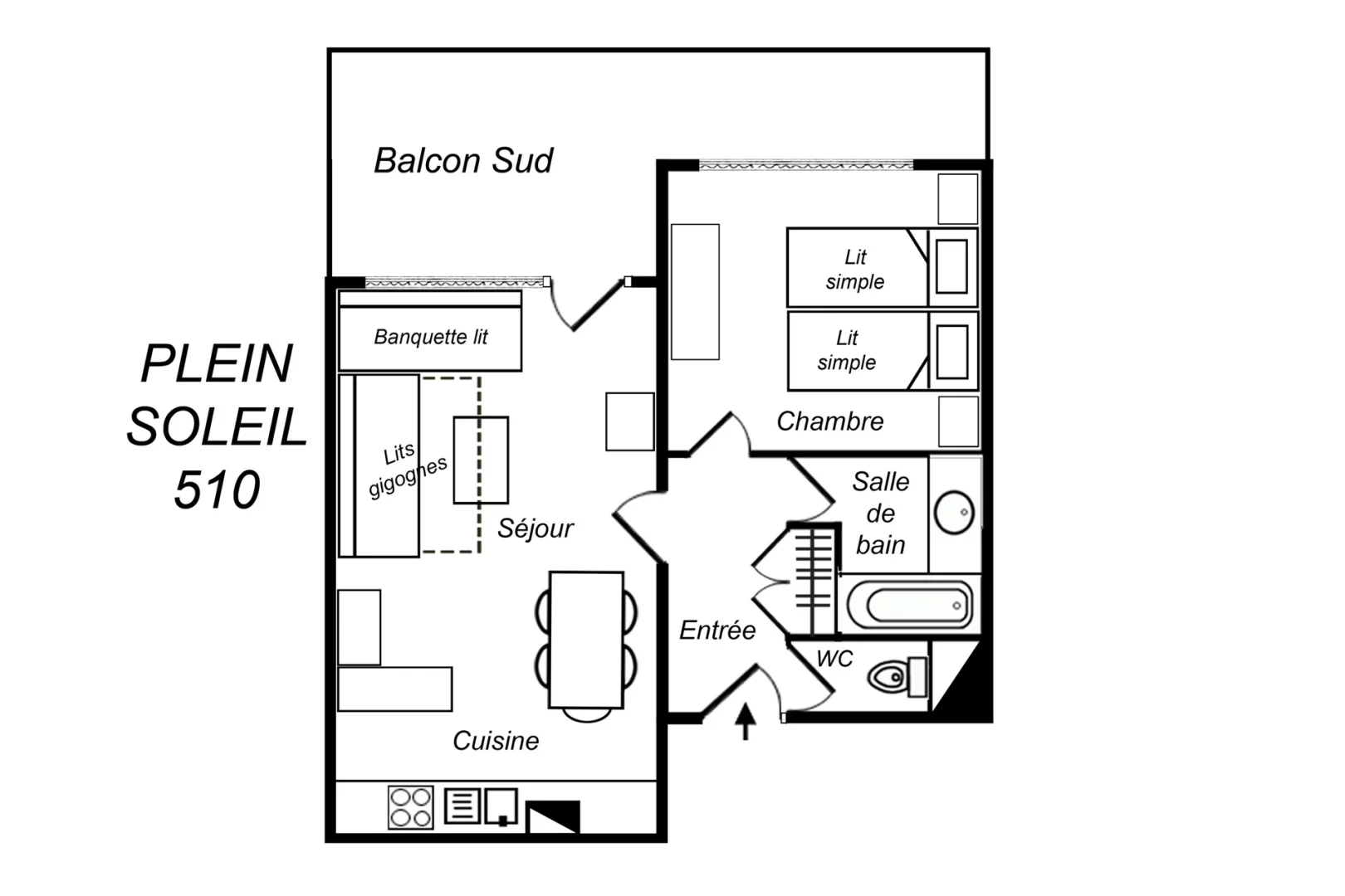 2 Rooms, 5 Persons, 40m², South Balcony