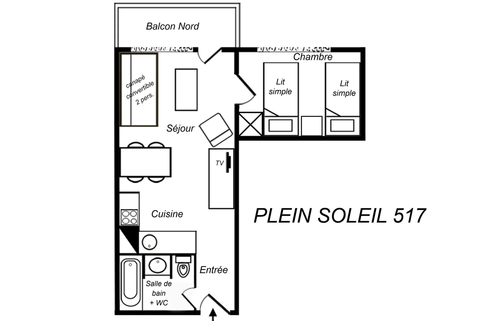 2 rooms, 4 Persons, 33m², North balcony