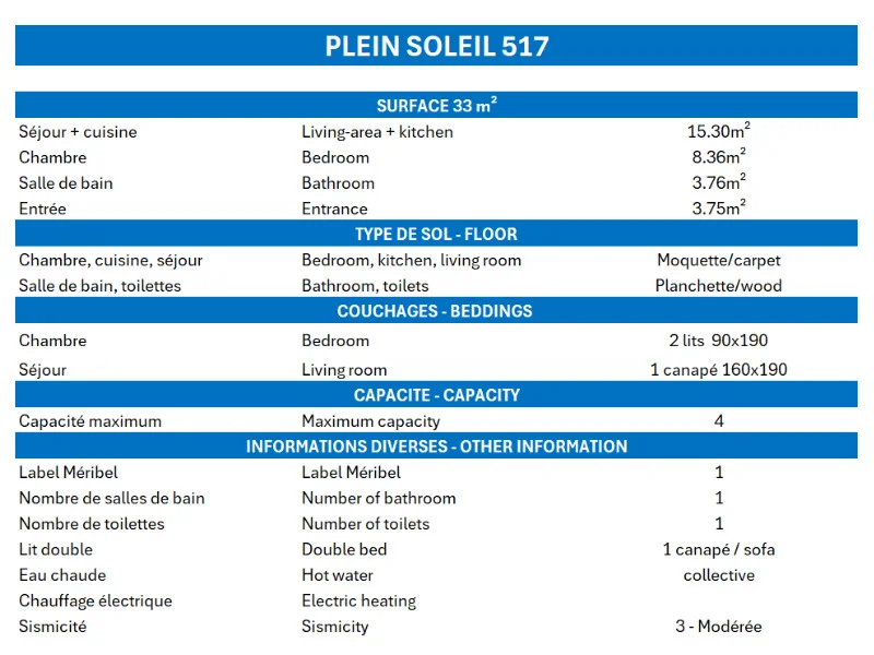 Residence " Plein Soleil " is ideally located along the slopes and nearby the centre commercial area.