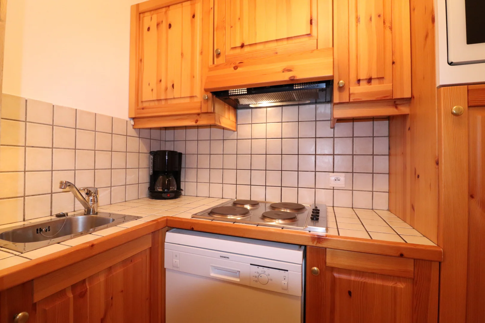 Kitchen corner: oven with micro-waves, fridge, dishwasher, 4 hot plates, hood, filter coffee machine, toaster, electric kettle
