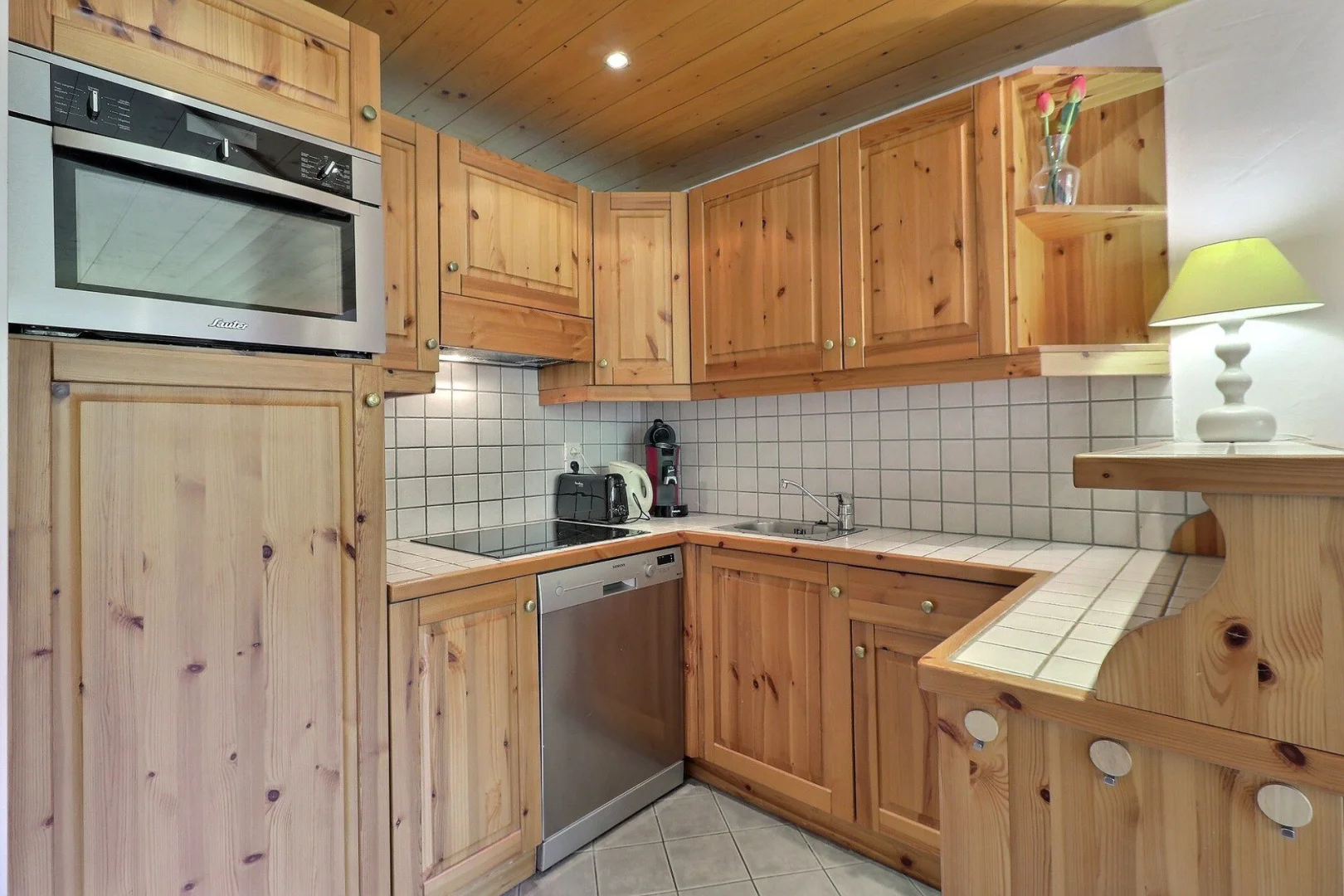 Kitchen with a bar : oven with micro-waves, fridge, dishwasher, 3 ceramic hubs, filter coffee machine, toaster, electric kettle, hood