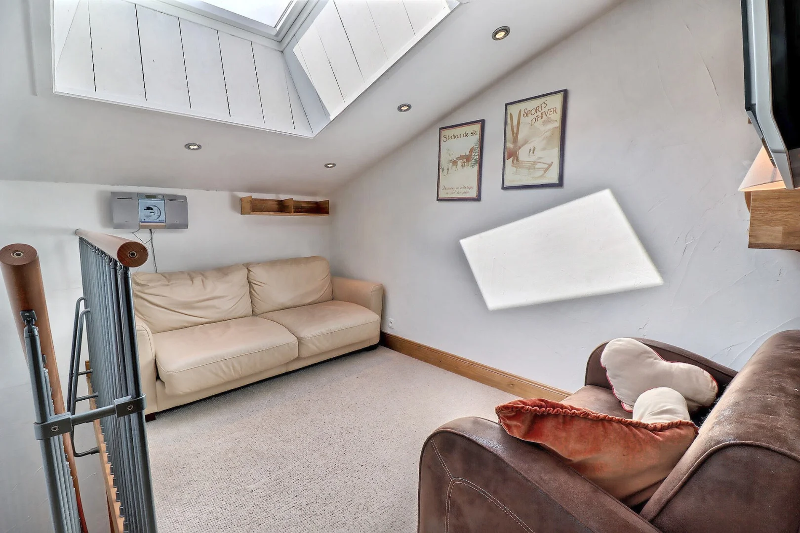 Mezzanine (open on the living room) with the lounge area with 2 sofas,