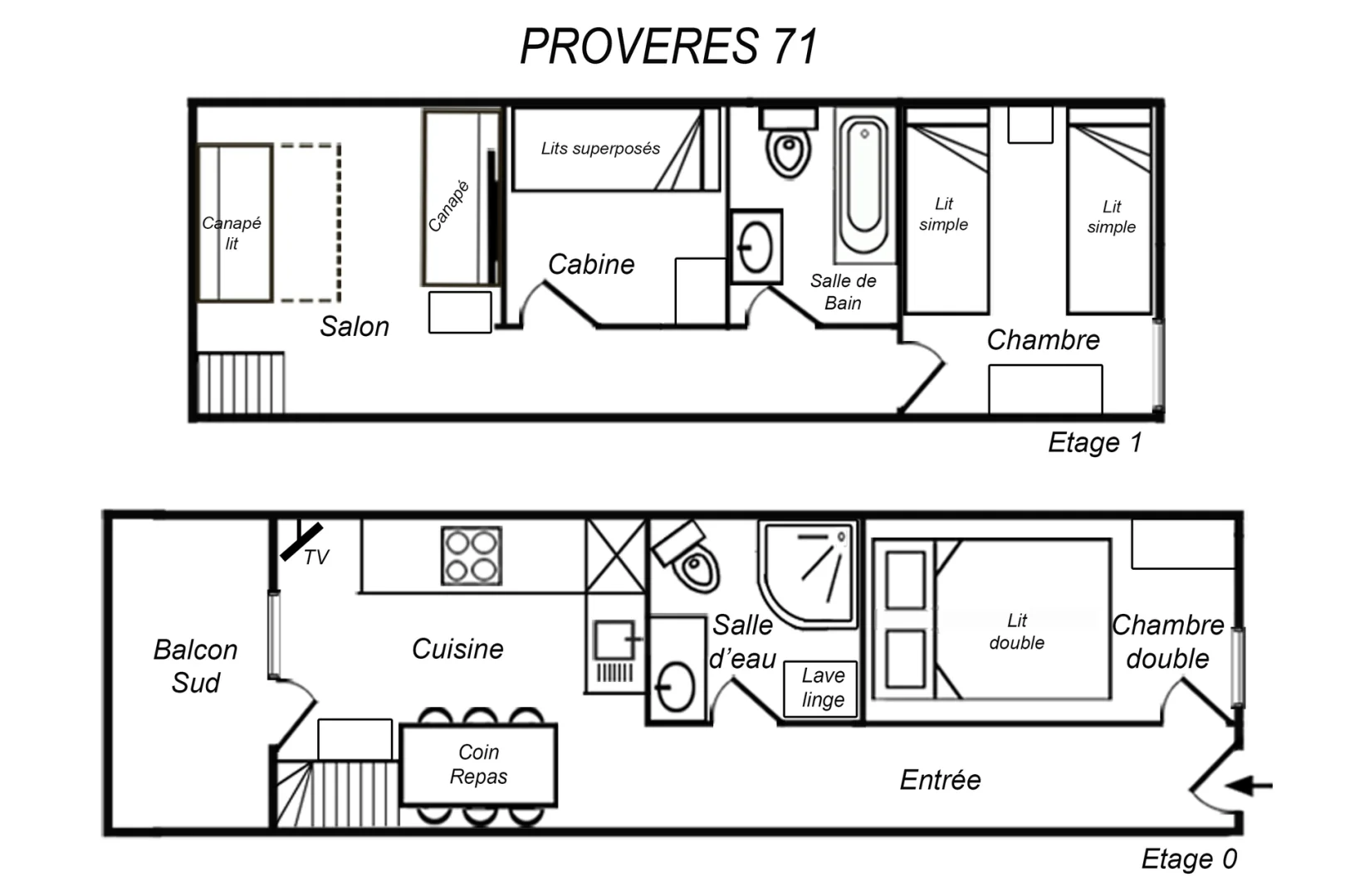 3 Room Duplex with cabin 6/8 Persons, 55m², East/South-East Balcony, 4th Floor