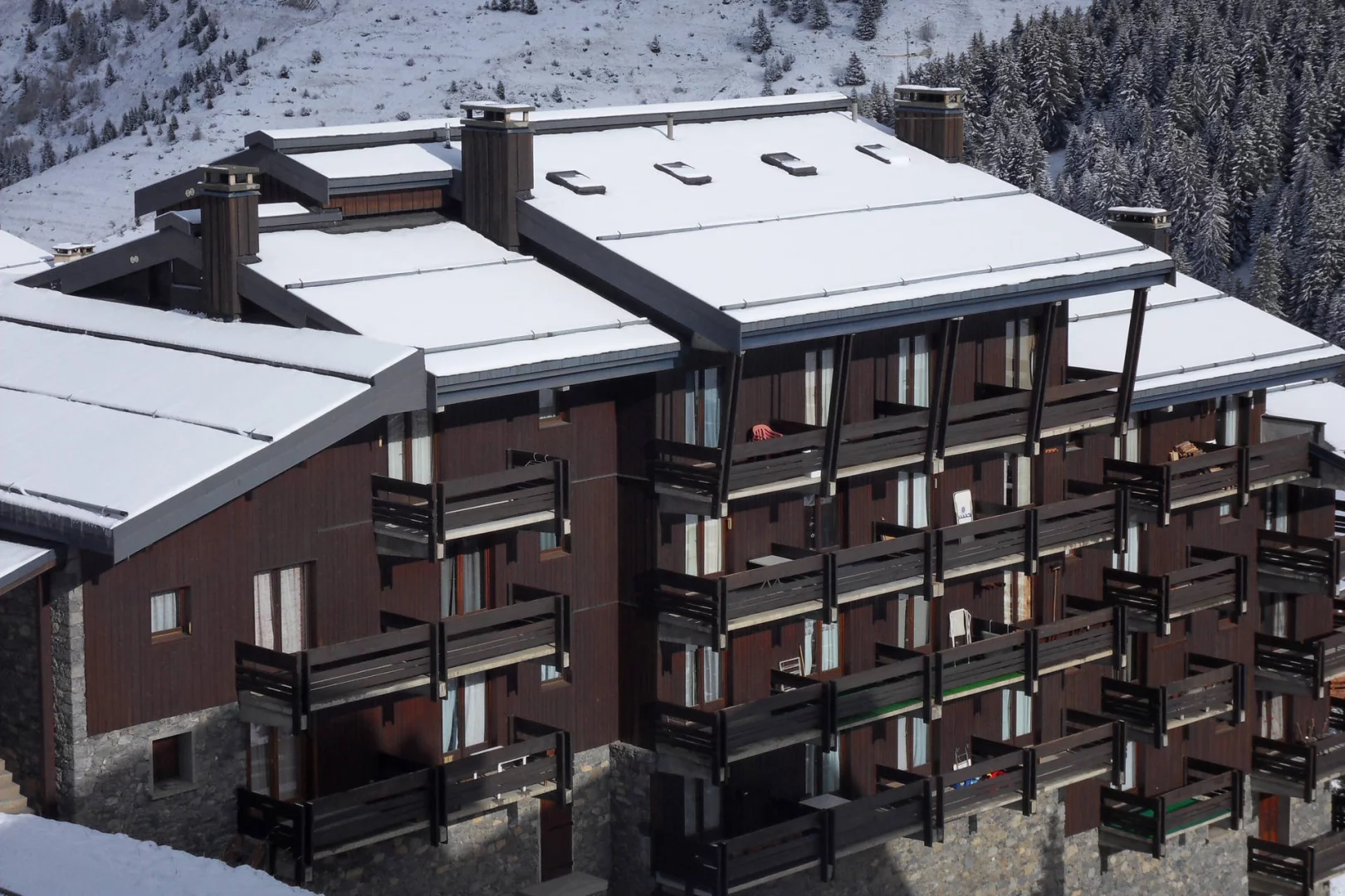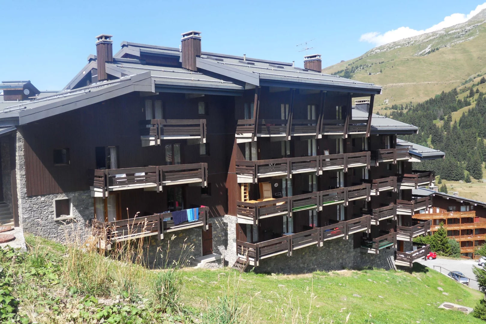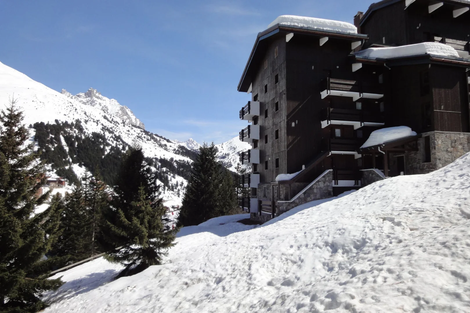 Residence " Erines " is half-way to the 2 commercial centres of Hameau and the centre. The latter is 500m far going down the stairs or taking the "téléporté des chalets" lift (right down the first part of the stairs).