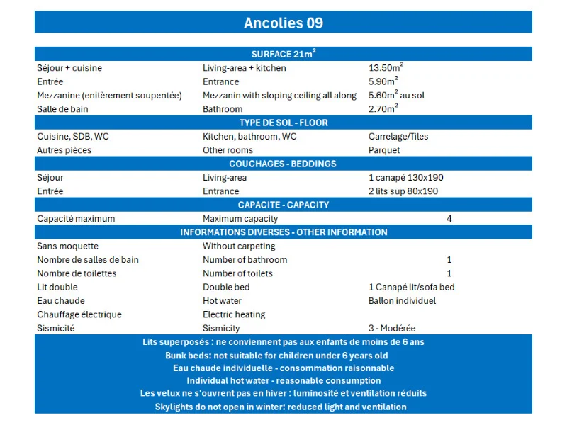 Residence Ancolies is located 200m from the slopes and 700m from the commercial centre of Laitelet area.