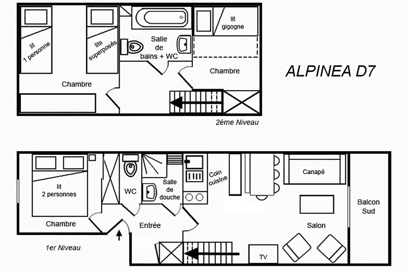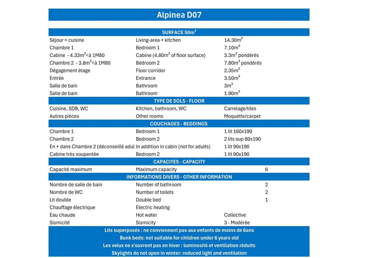 3 Rooms Duplex, 5/6 Persons, 50m², South Balcony (limited view), 3rd Floor with lift
