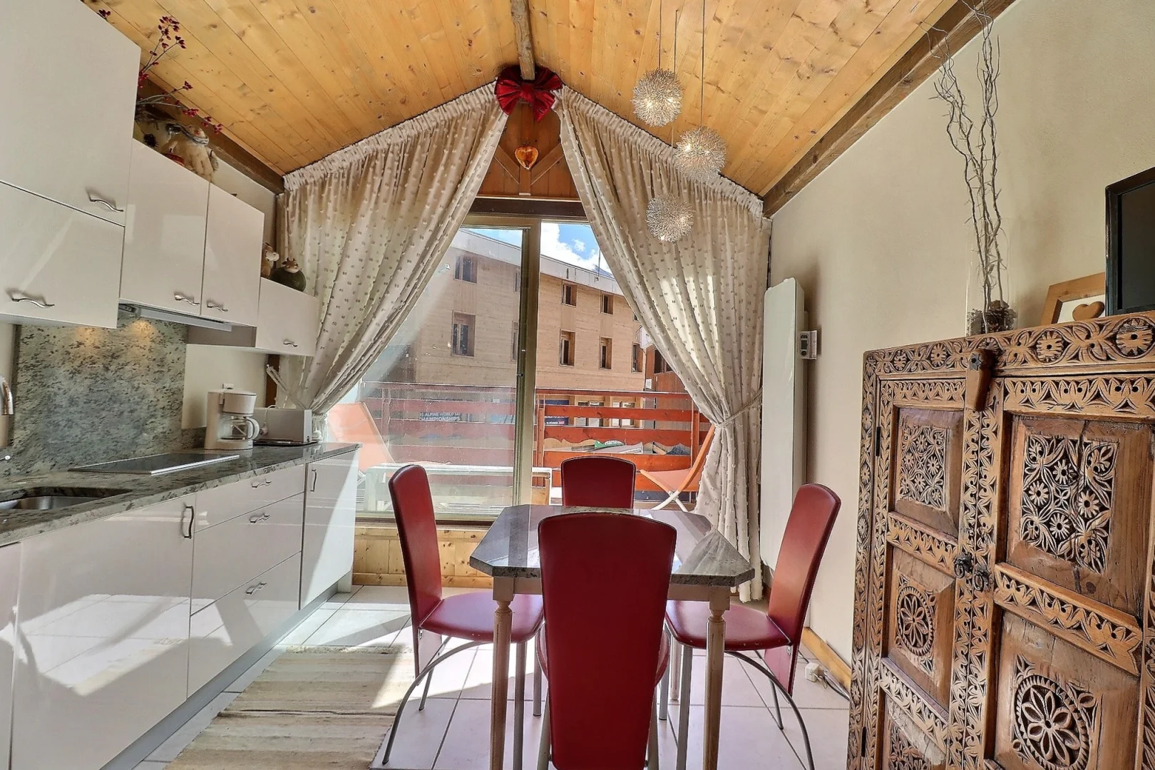 Discover this atypical studio of approximately 34 m2 (including 22 m2 Carrez) located in the center of Méribel-Mottaret. This property has a bright living room with an open kitchen, a cozy lounge, a bathroom in very good condition, separate toilets, and even a sleeping area on the mezzanine, all decorated with tailor-made storage for perfect organization. . But that's not all. You will also appreciate the south-east facing balcony, ideal for enjoying the sun. In addition, you will have ski-in/ski-out access, and you will be a few steps from all the amenities of Méribel-Mottaret. A ski locker completes the package.